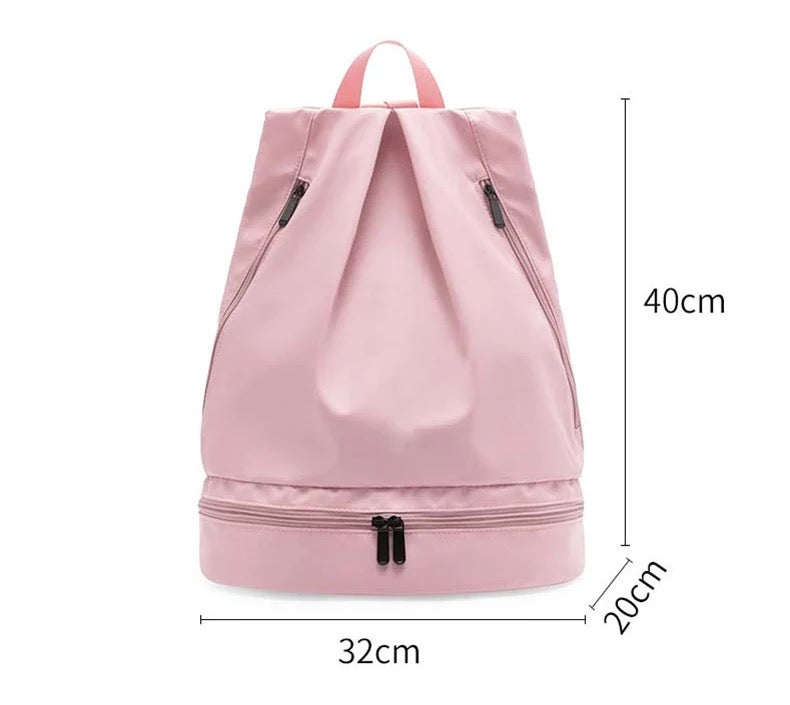 This backpack is a must have features a sneakers/shoes Compartment that’s perfect for traveling and has a wet compartment for wet clothing bikinis and more! Compact size but holds a lot! Great backpack for gym, travel, school and more!