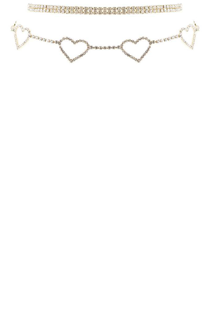 RHINESTONE 5 HEART CHOKER NECKLACE
