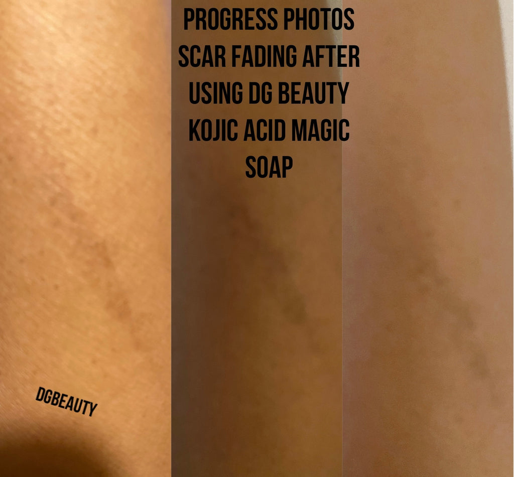 Lightens dark spots and is also great for hyperpigmentation, lightens dark bikini area and lightens scarring from chin hair removal and other skin damage/scarring (for faster results spot treat dark areas by leaving soap on area for 30mins-1hr or overnight and then rinse off. Use for 3 times per week